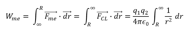 +q1, +q2라는 charge가 있다고 해보자, 내가 +q1으로부터 +q2를 거리 R까지 +q2에 운동에너지(가속도)를 주지 않고 옮기려면, 무한한 거리에서부터 R까지 정확히 Coulomb's force와 동일한 크기의 힘을 가하면서 옮겨야 한다. 마치 스프링을 압축시키는것과 같다.