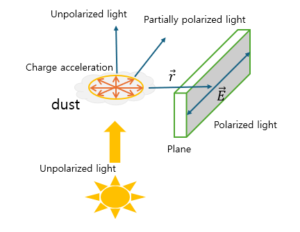 태양빛과 같은 unpolarized light의 electric field는 dust의 proton, electron을 acceleration시킨다.