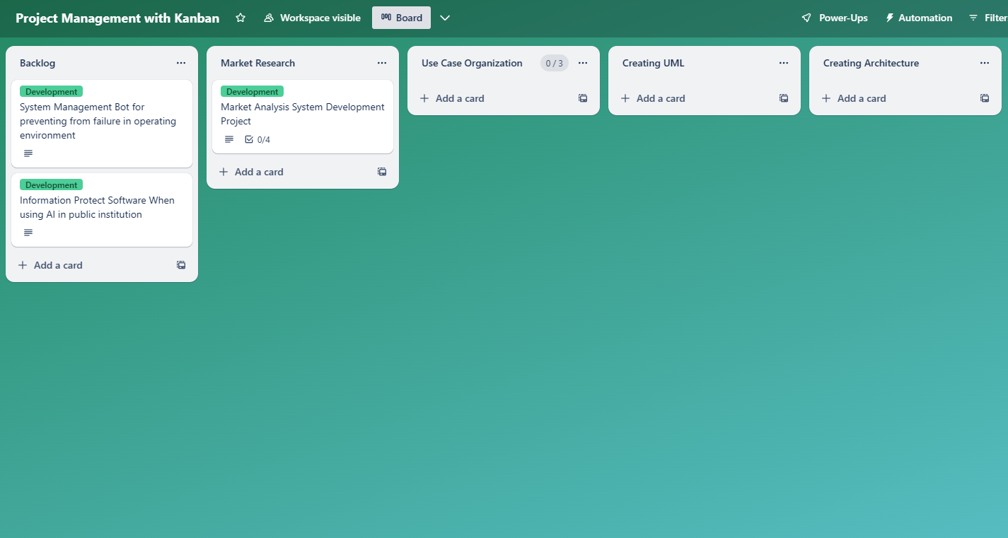 프로젝트 관리를 위해서 칸반보드를 사용하기로 하였다. 트렐로는 다른 많은 상용 프로젝트 관리툴보다 가볍기 때문에 지식이 거의 없는 개인이 이용하기에 효과적이다.