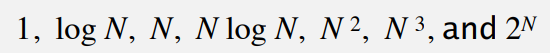 기본적으로 대부분 함수의 실행시간 증가율은 다음 중 하나로 표현되어도 문제없다.