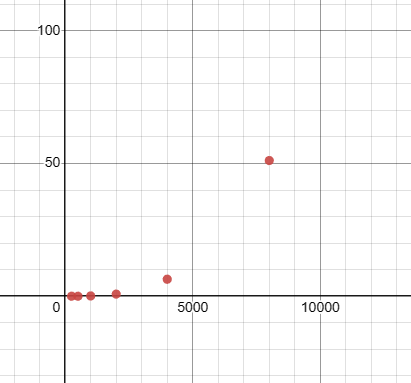 아래는 Brute-force알고리즘으로 3-SUM문제를 해결 할 때, 실행시간을 측정한 예시이다.