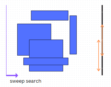 따라서, 이 문제는 1d interval search 문제로 변환되고, interval이 있다면 교차하는 것이 있다는 것이다.