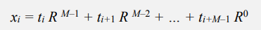 문자열의 Radix가 R이고, t가 각 위치의 character값이라고 한다면 문자열이 나타내는 값은 x가 된다.
